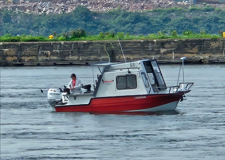Our comfortable 18.5 ft covered Hobo Boat that seats 1-6 persons comfortably, provides safety from the elements along with a fishable deck at the back and front.